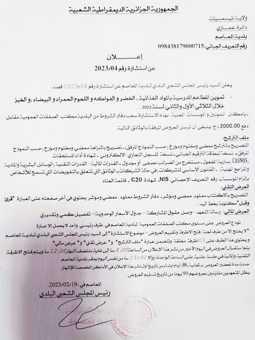إعلان عن استشارة رقم 2023/04