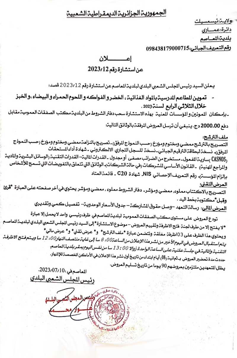 إعلان عن استشارة رقم 2023/12