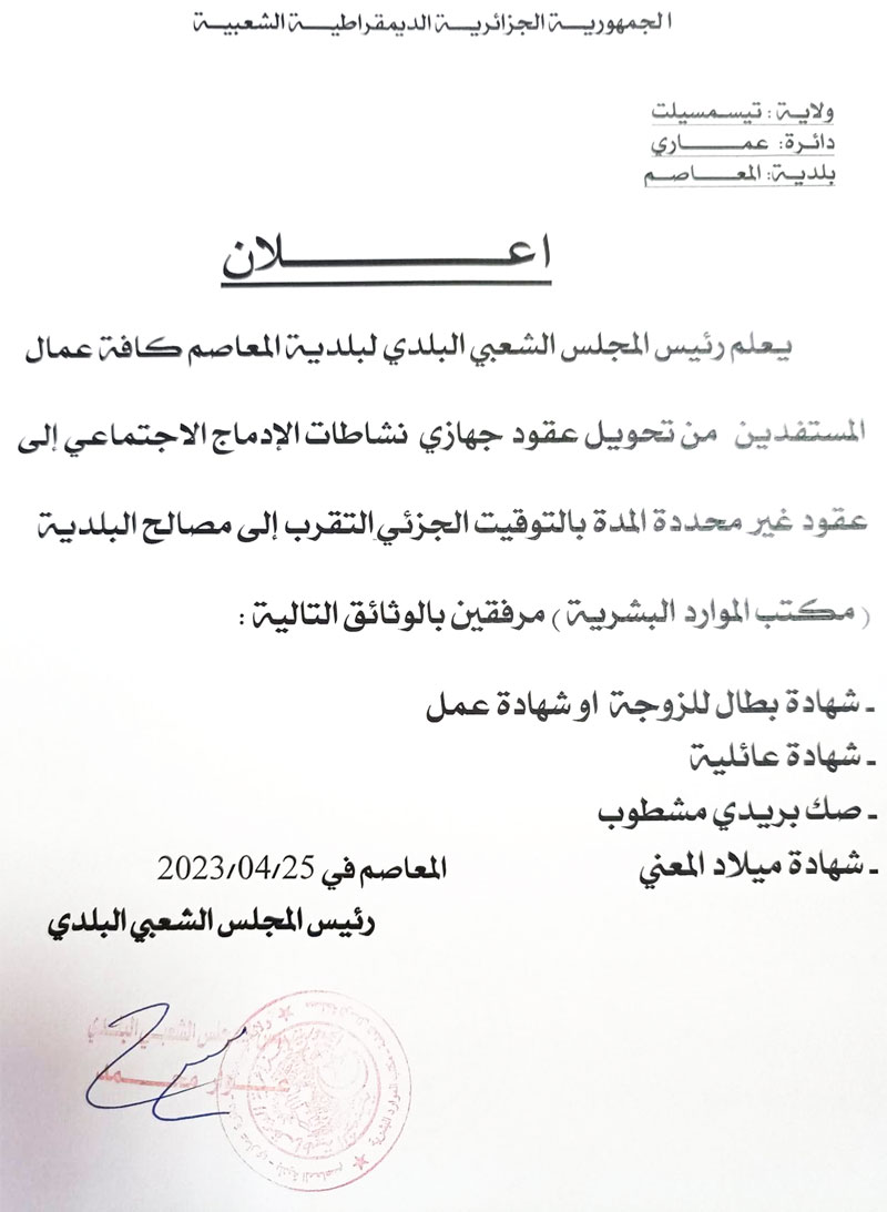 إعلان : تحويل عقود جهازي نشاطات الإدماج الاجتماعي